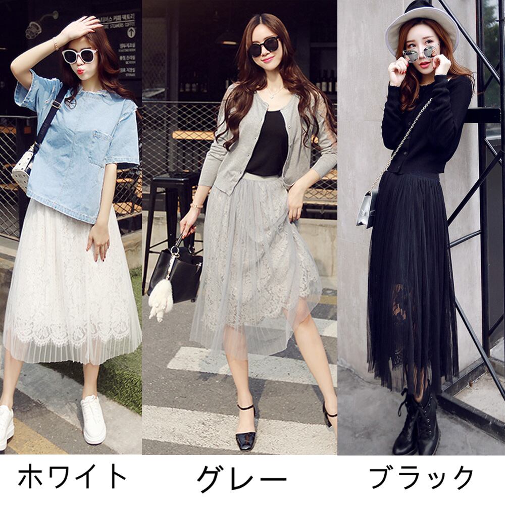 チュールレース スカート 膝丈 ハイウエスト Aライン 春夏 フェミニン