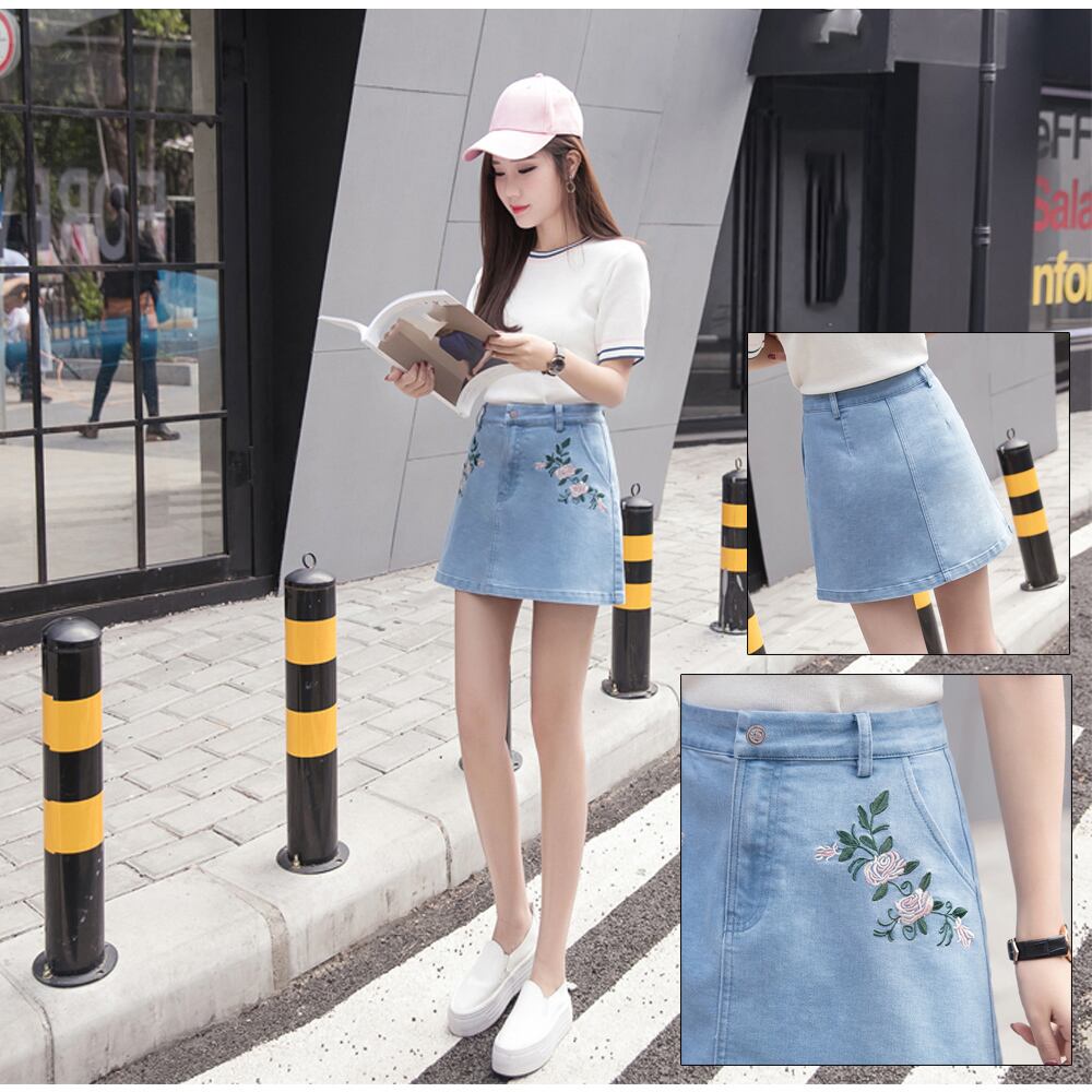 台形スカート 花柄 刺繍 デニムスカート ミニスカート Aライン