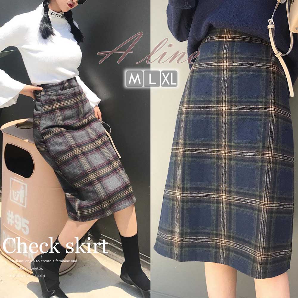 チェックスカート レディース ハイウエスト Aラインスカート ひざ丈 ボトムス