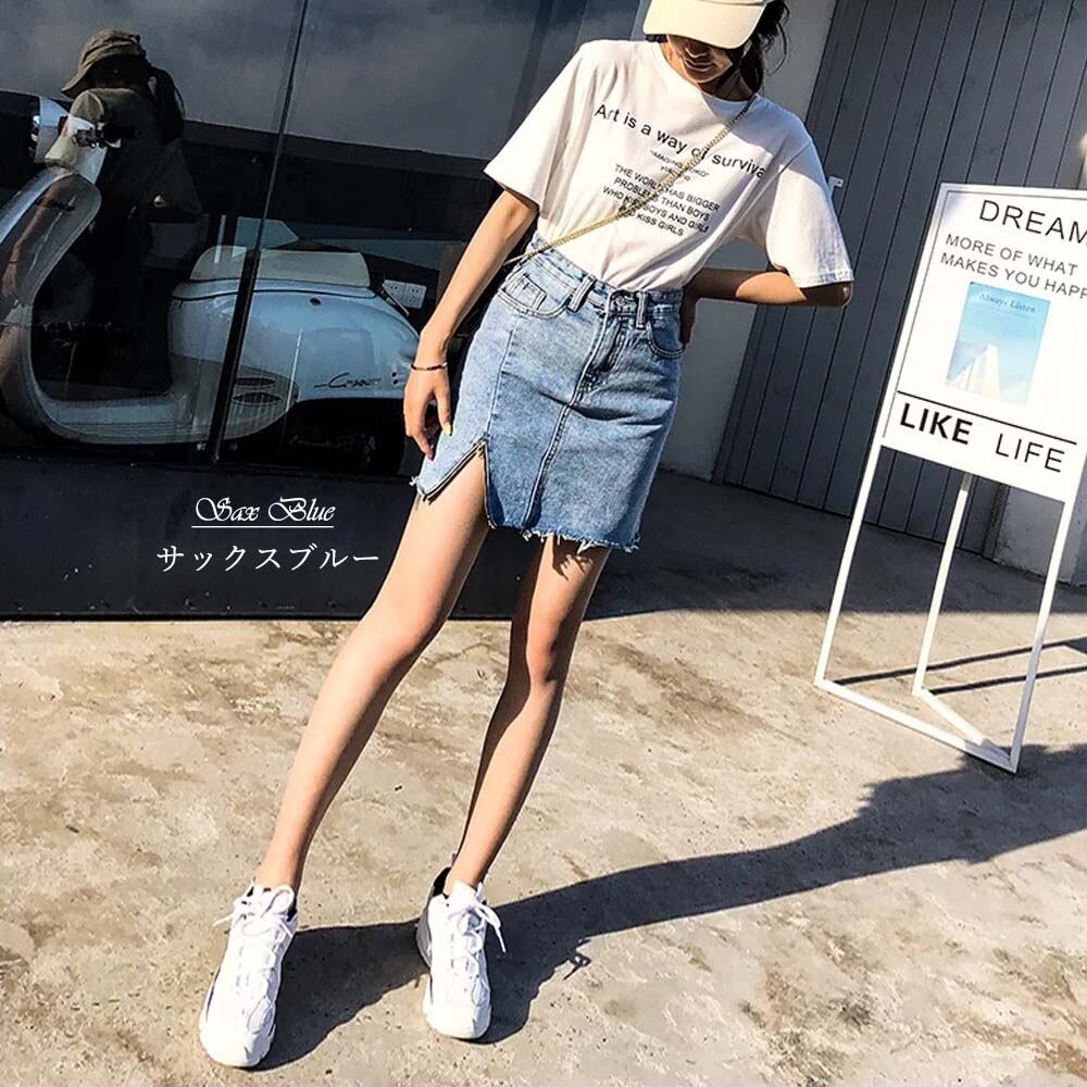 ダメージ デニムスカート ミニスカート セクシー スリット スカート 夏