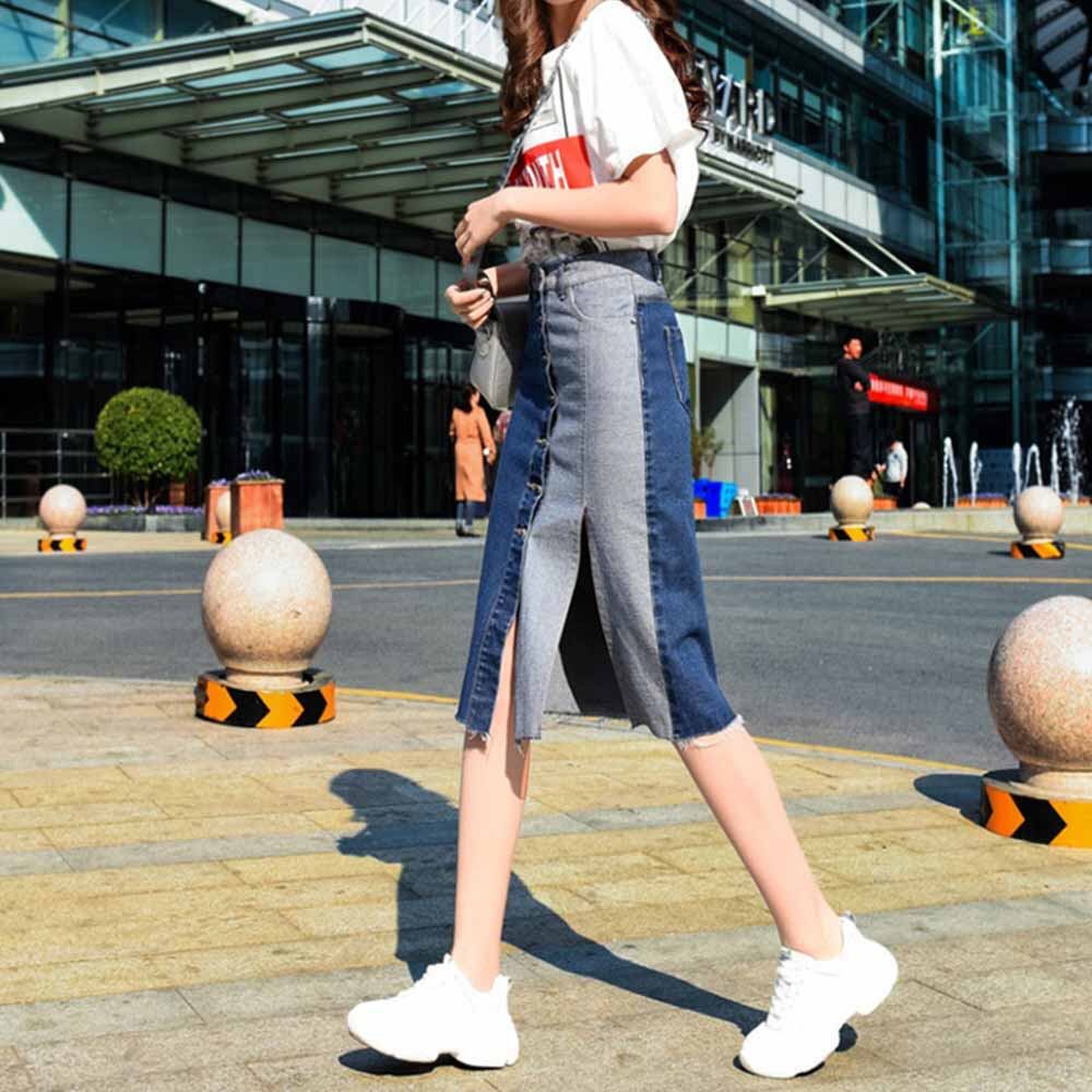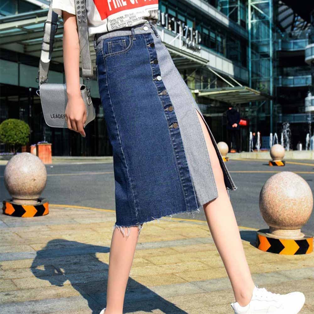 デニムスカート レディース ひざ丈 スカート フロントボタン スリット