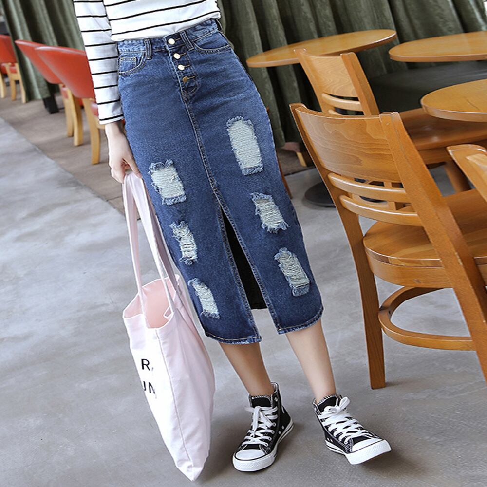 ダメージ デニムスカート レディース スリット クラッシュ デニム