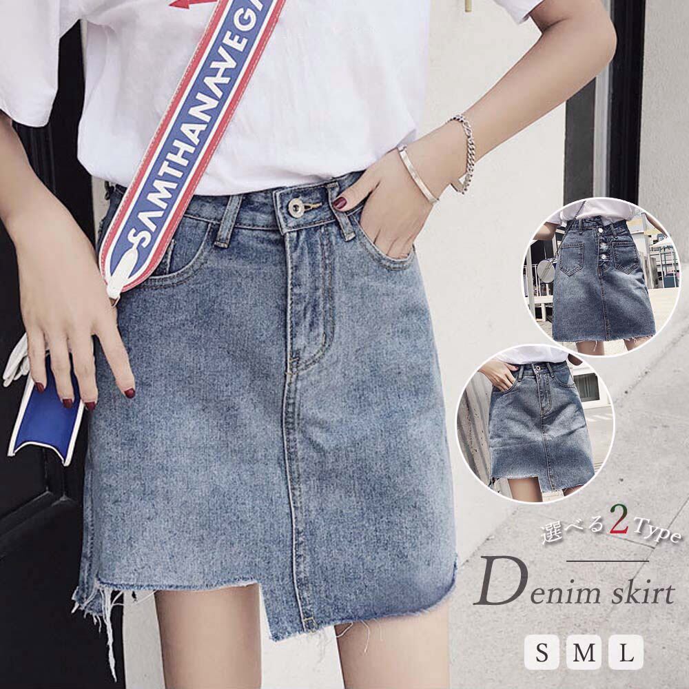 デニムスカート レディース ハイウエスト Aラインスカート 着やせ 膝上丈