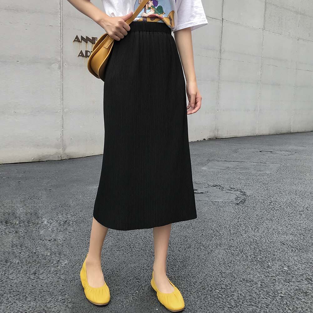 ハイウエスト スカート レディース 無地 ミディアムスカート ウエストゴム