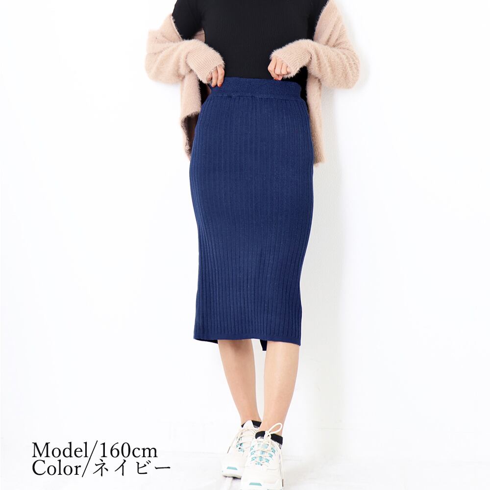美脚効果抜群のミモレ丈、縦ラインを強調するリブ編みデザインで着やせ効果も狙えちゃう!!