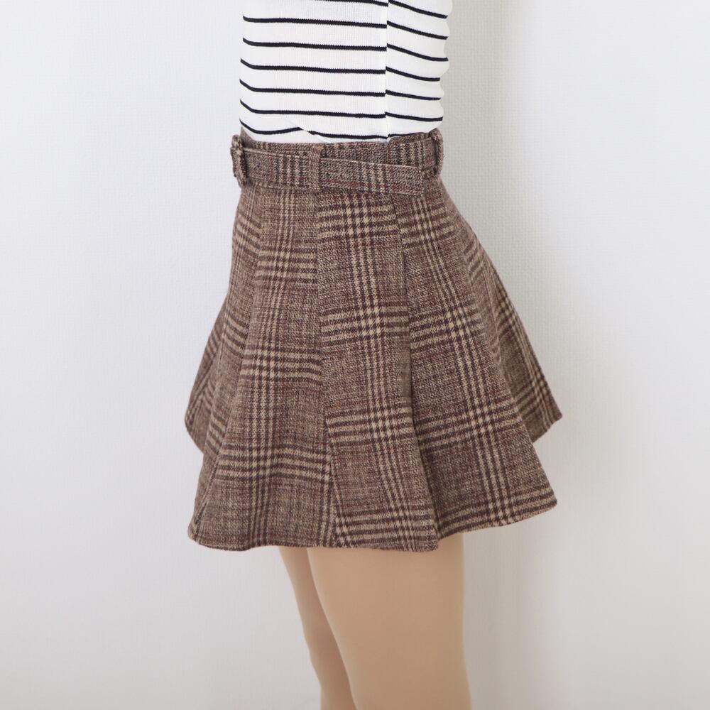 グレンチェックスカート レディース フレアスカート ボトムス ベルト付き