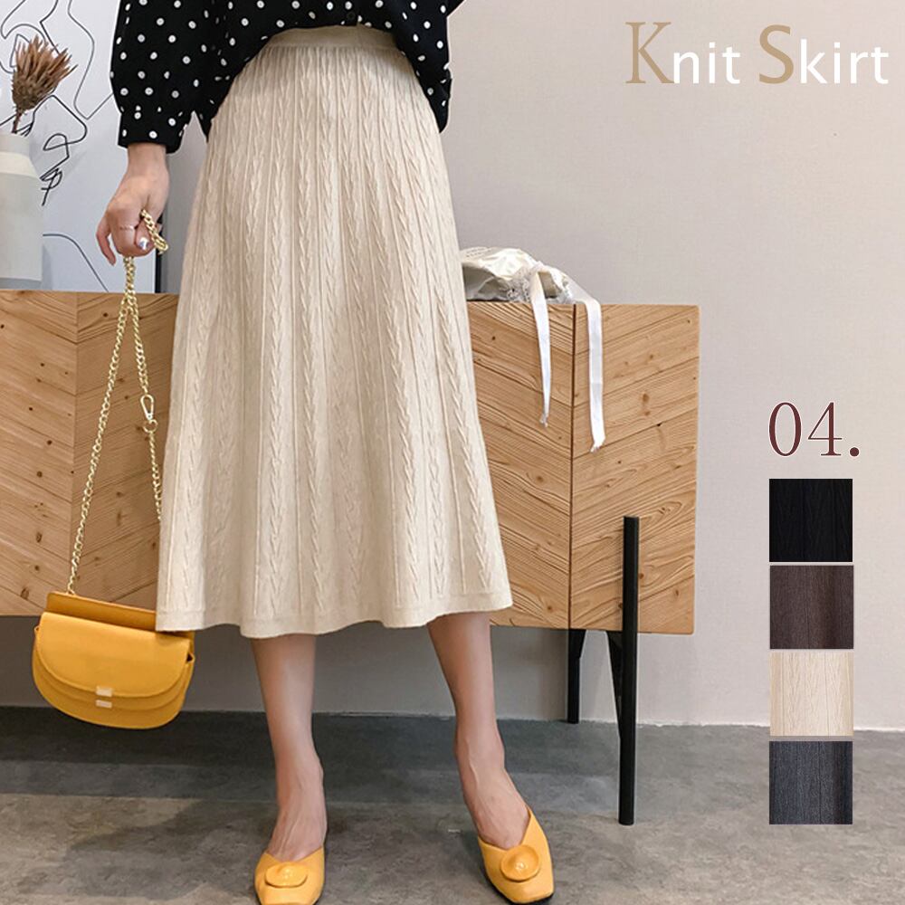スカート 秋冬 レディース ミモレ丈 ニットスカート ケーブル ボトムス 無地