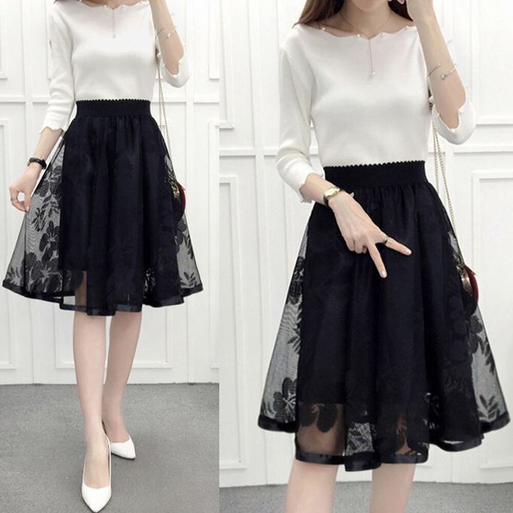 レース刺しゅうスカート レディース メッシュスカート 裏地付き 透け感
