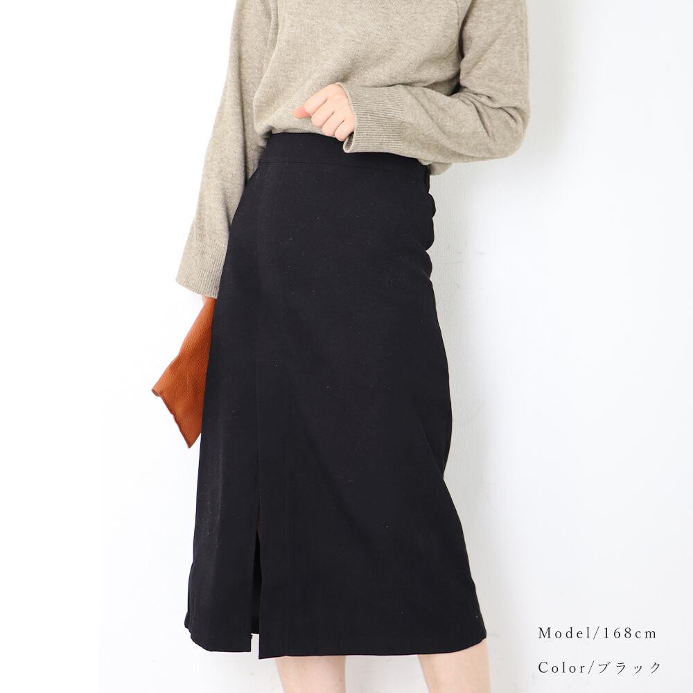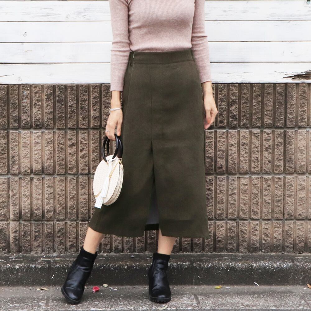 フロントスリットなので動きやすく、程よいミディアム丈で大人女性コーデが完成
