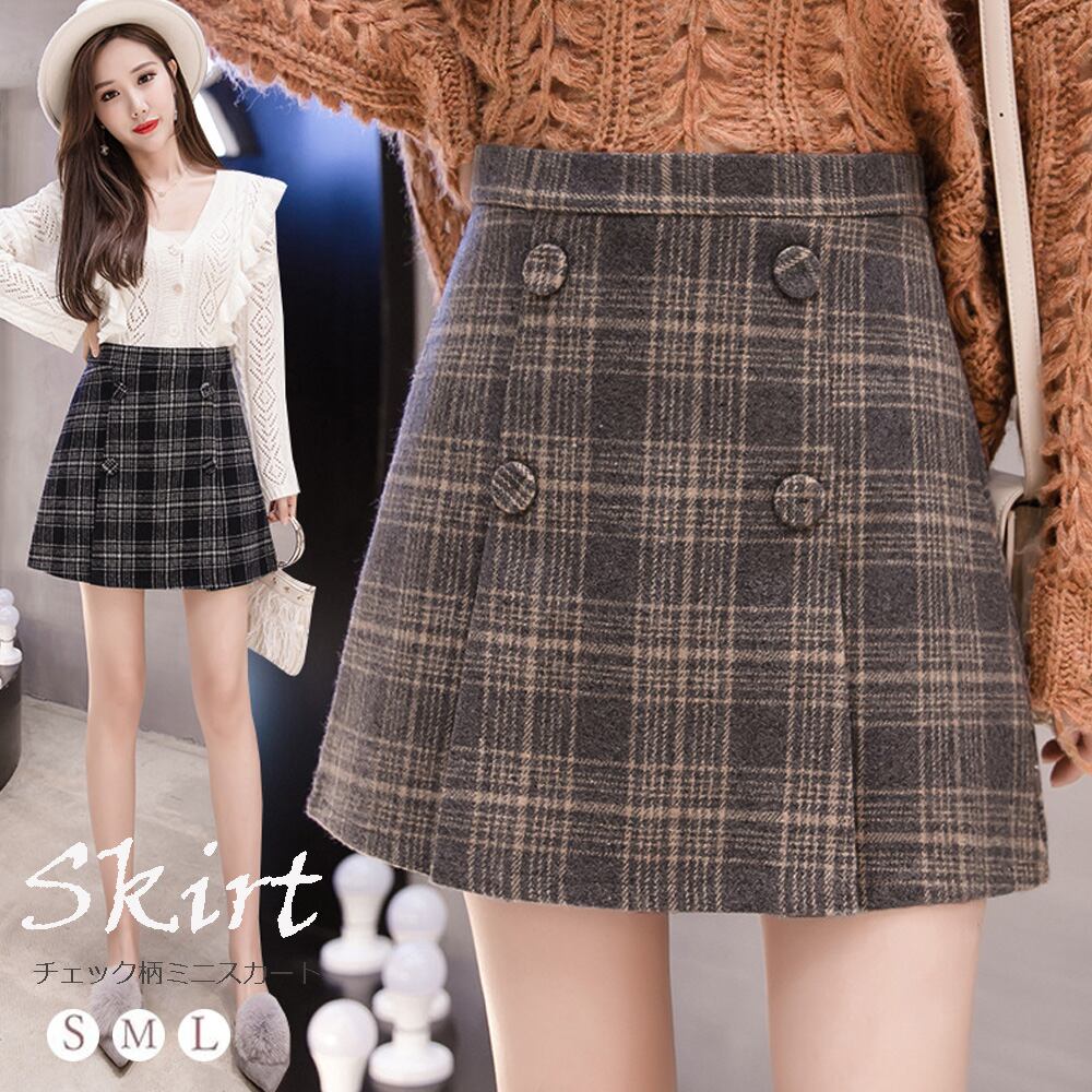 チェック柄 ミニスカート レディース ハイウエスト Aラインスカート ボトムス