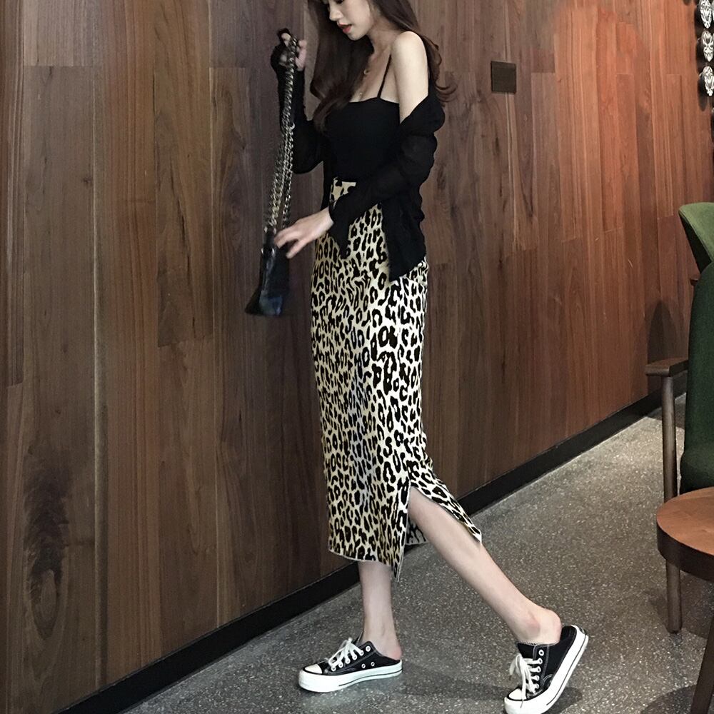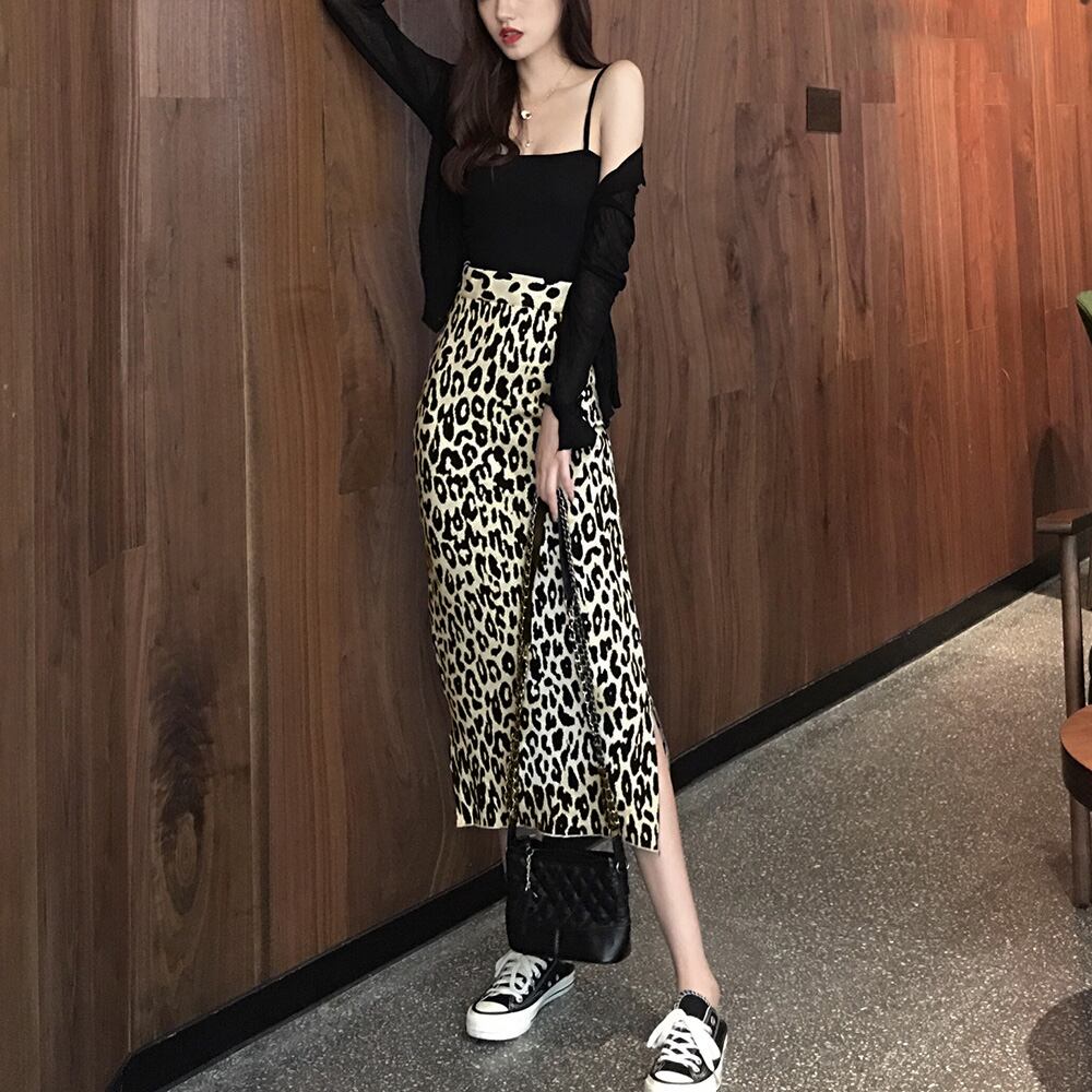 ヒョウ柄 ニットスカート レディース ハイウエスト タイトスカート スリット