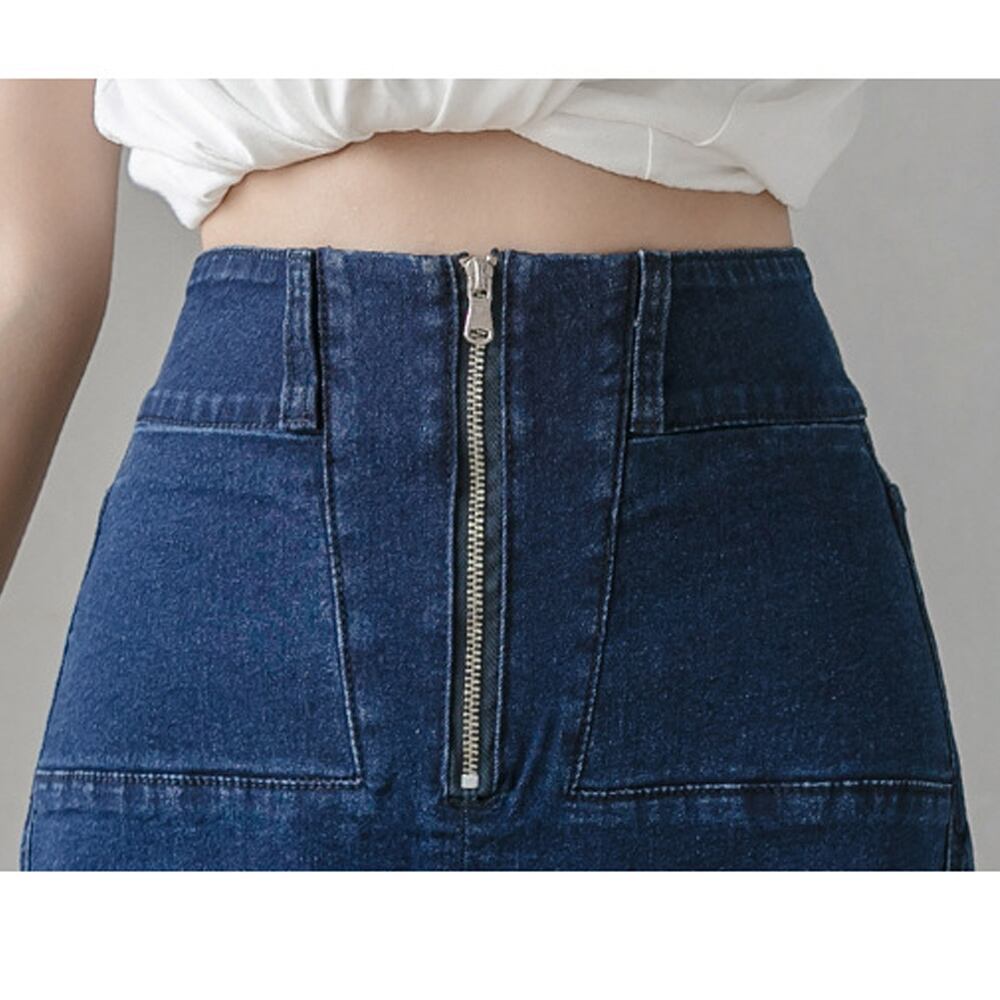 デニムスカート ミニ丈 タイトスカート フロントジップ ストレッチ ボトムス