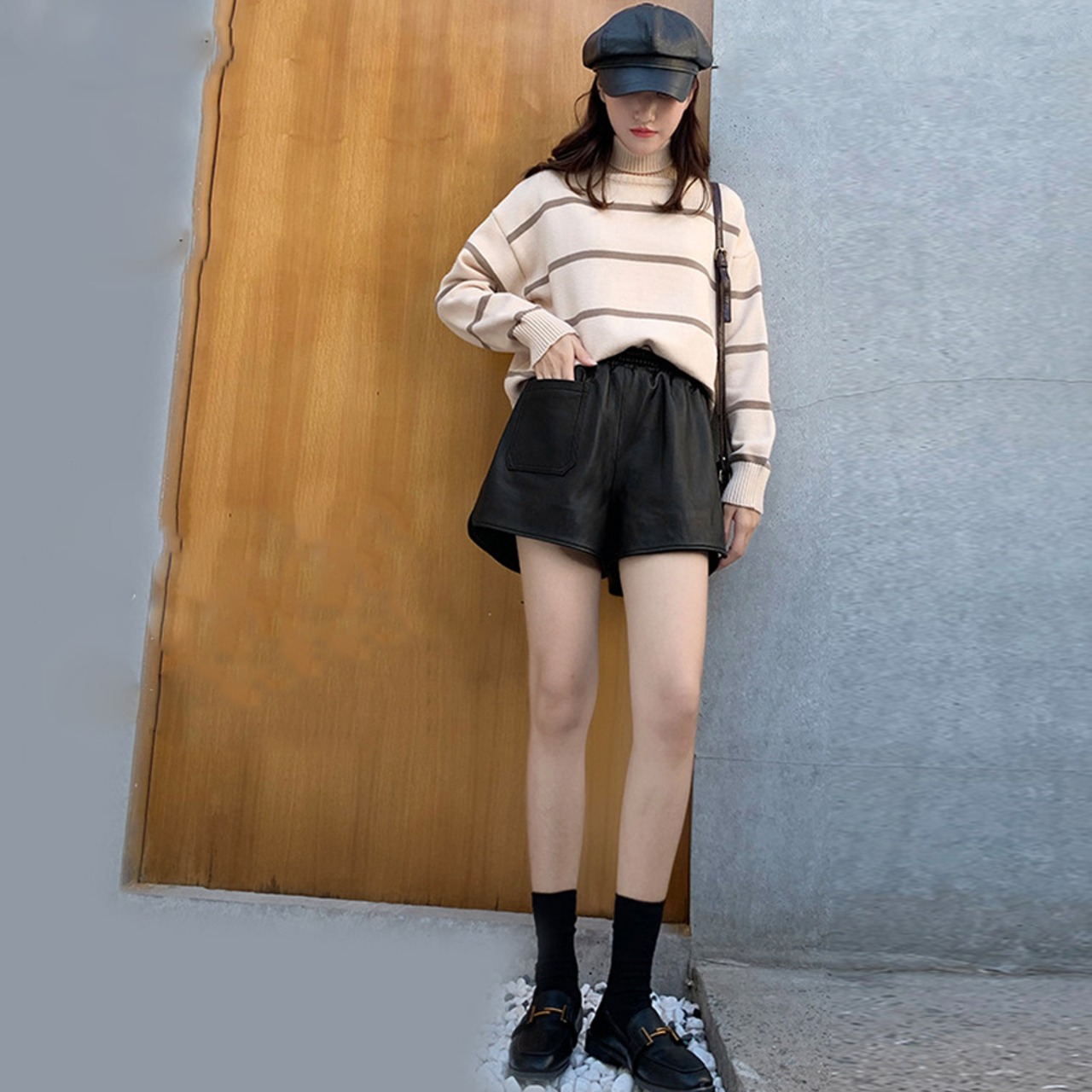 キレイめにも、カジュアルにもマッチするポケット付きのレザー調ショートパンツ