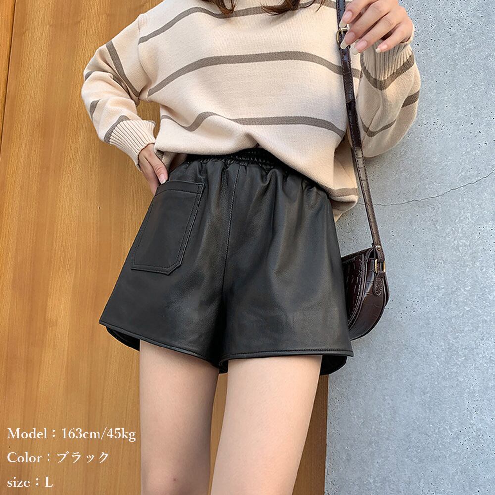 レザーショートパンツ レディース レザー調パンツ ウエストゴム ボトムス