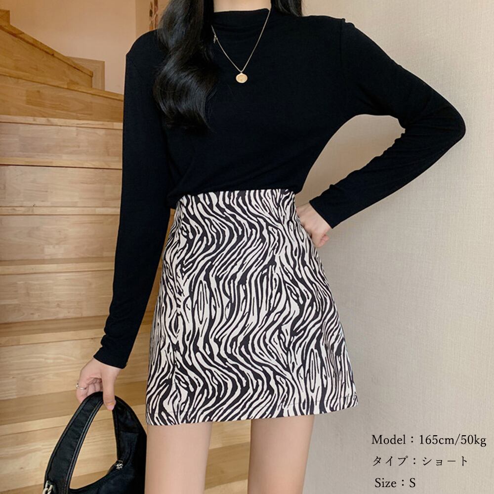 着心地も肌触りも最高で着丈が選べる2タイプのハイウエストペンシルゼブラ柄スカート