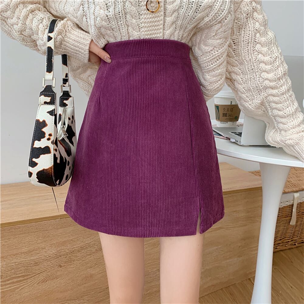 ミニタイトスカート スリット入り Aラインスカート コーデュロイ ハイウエスト