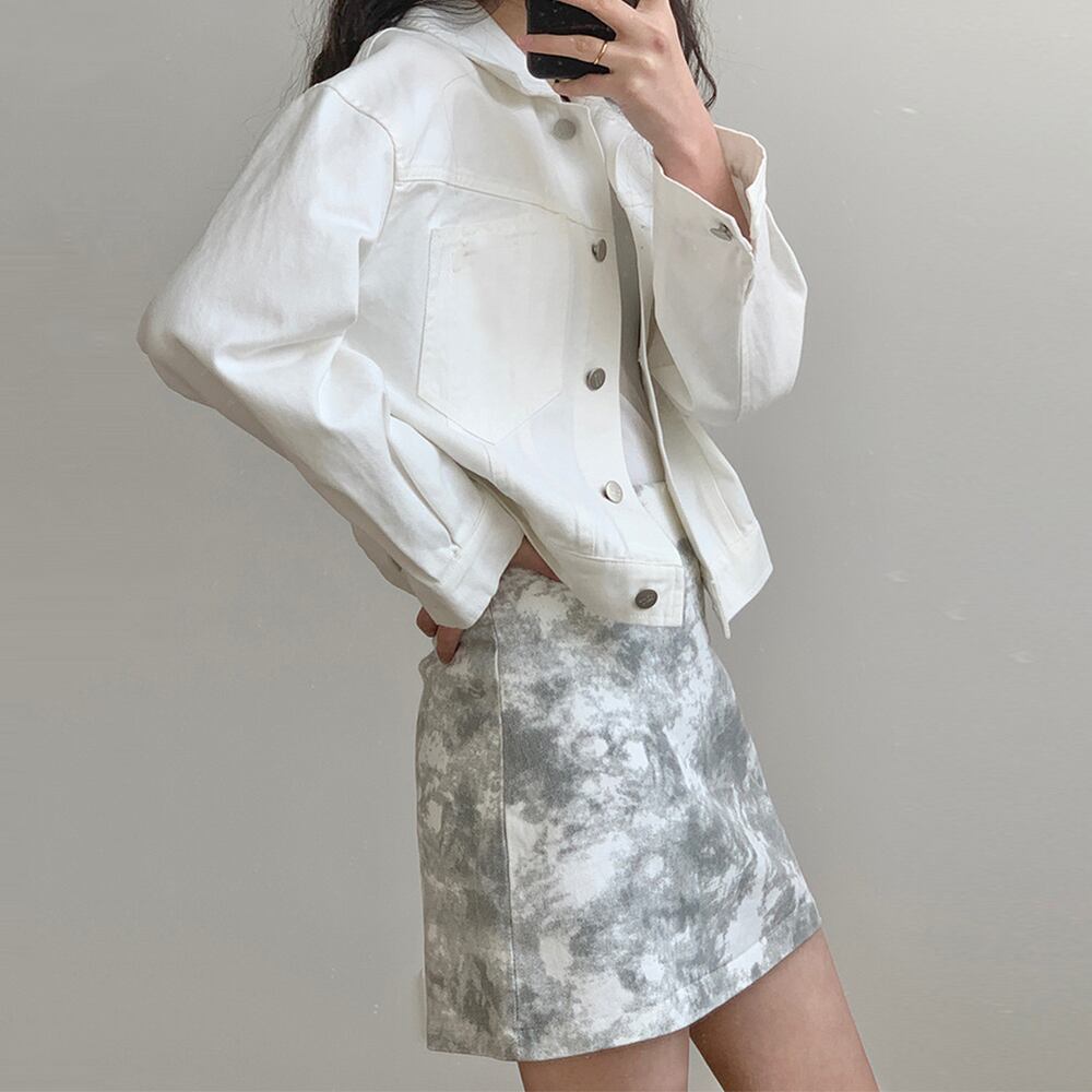 ショート丈のタイトシルエットが若い女性ならではの甘い色気を醸し出す