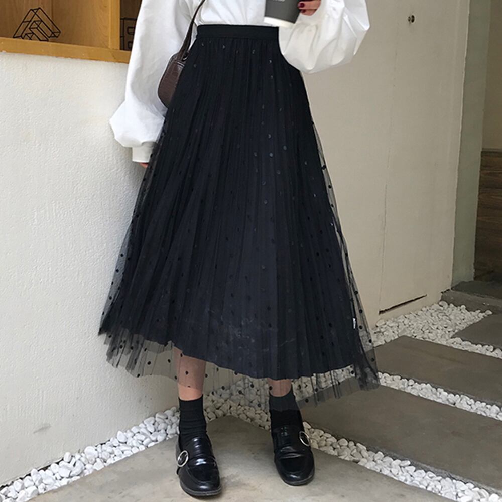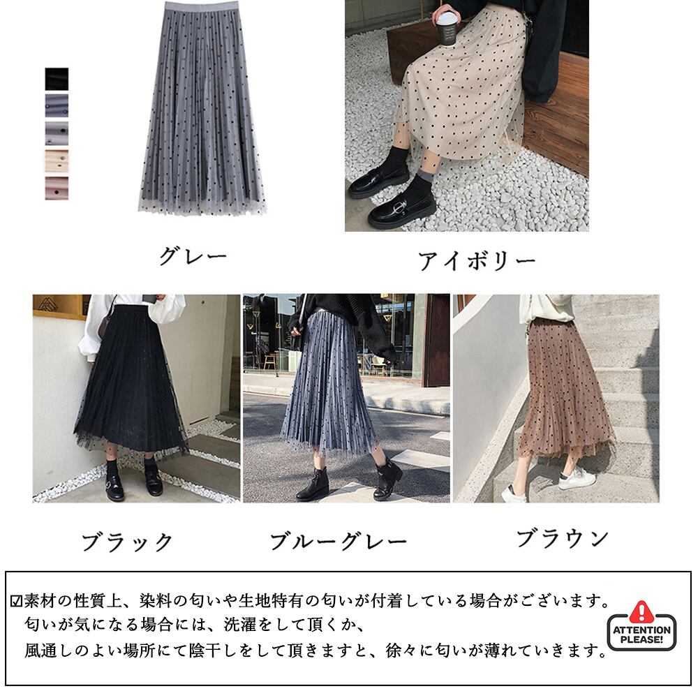 リバーシブル プリーツスカート レディース ドット柄 チュールスカート 春