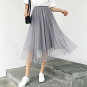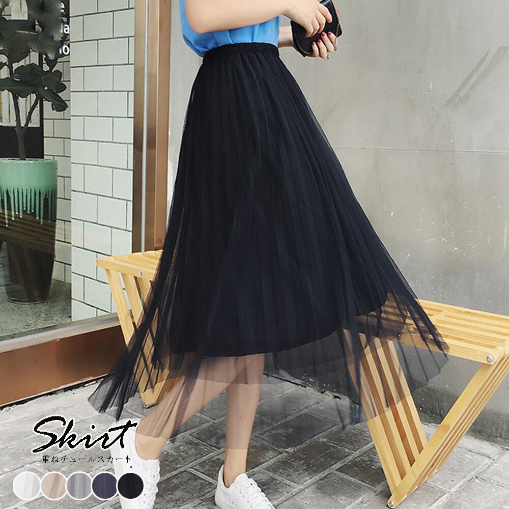 メッシュスカート 透け感 ウエストゴム ボトムス 体型カバー 裏地付き 春夏 Aライン スカート 無地 フレア スカート 着やせ