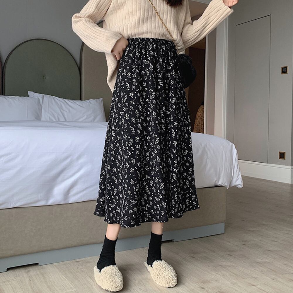 スカート レディース 花柄 ハイウエスト ウエストゴム 膝下 ボトムス おしゃれ 大人 Aラインスカート きれいめ ボトムス ファッション 女性
