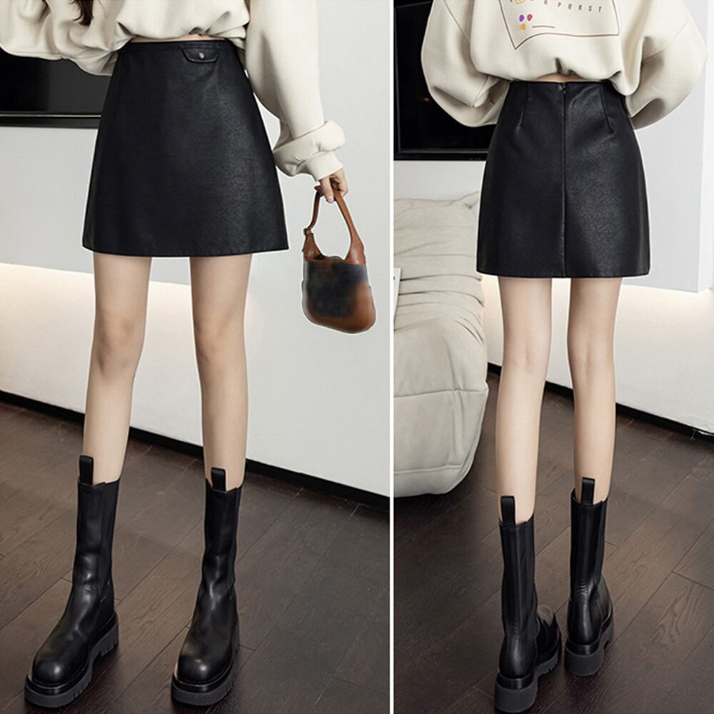 PUレザー スカート 着やせ ボトムス 美脚 美尻スカート