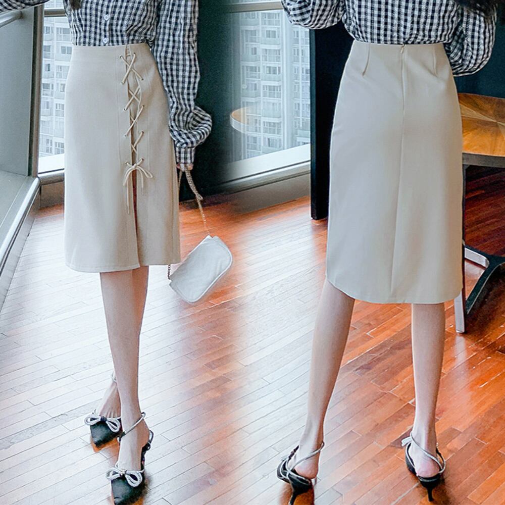 大胆なスリットがセクシーなレースアップデザインのサイドスリットタイトスカート