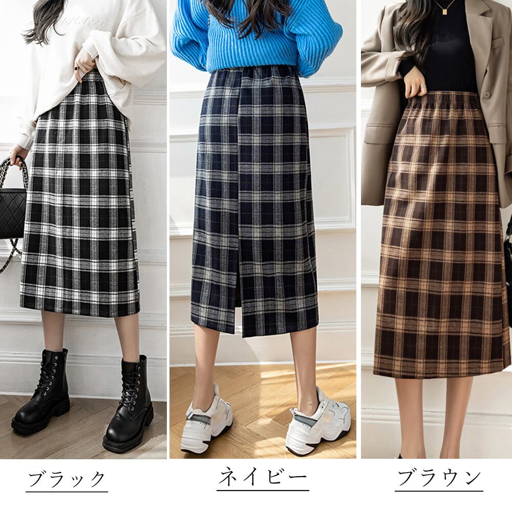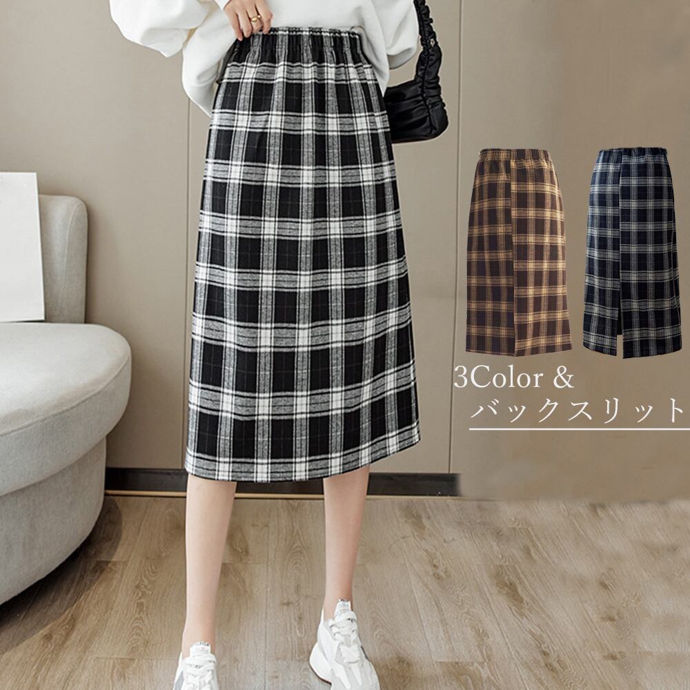 タイトスカート 春秋冬 バックスリット 台形スカート ウエストゴム 韓国ファッション