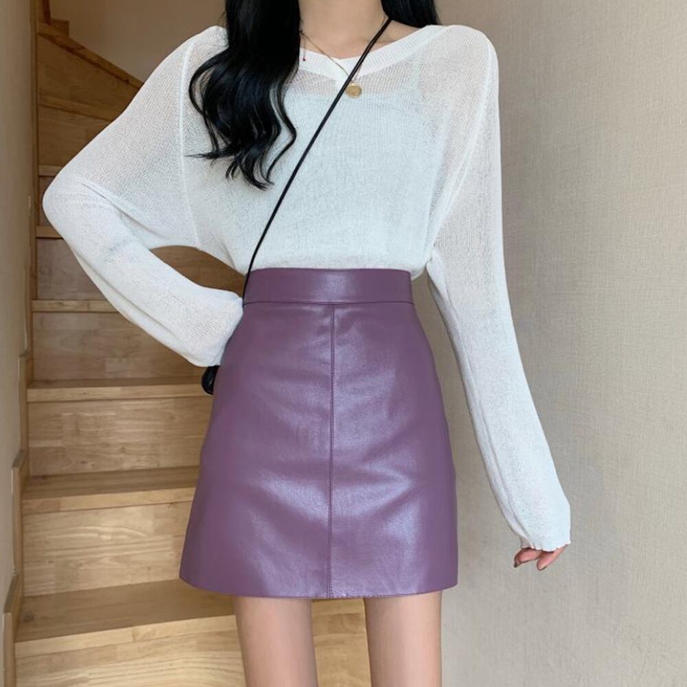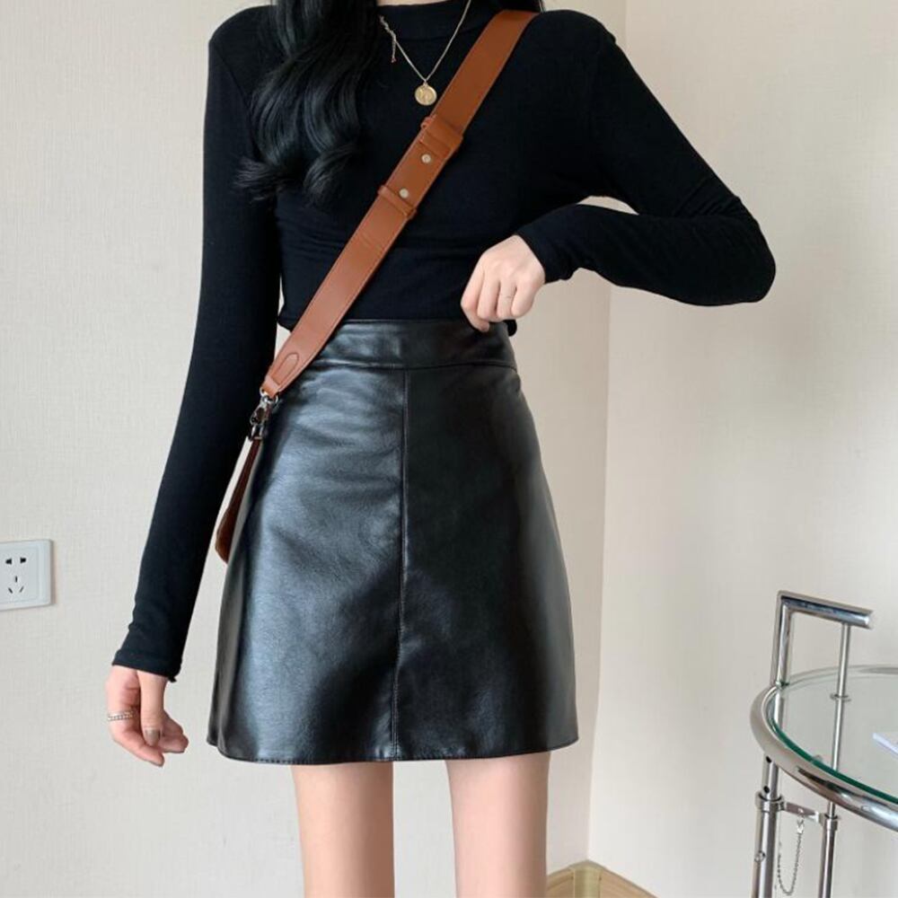 シンプルなデザインで幅広いスタイルに対応してくれるオシャレなデザインのフェイクレザースカート