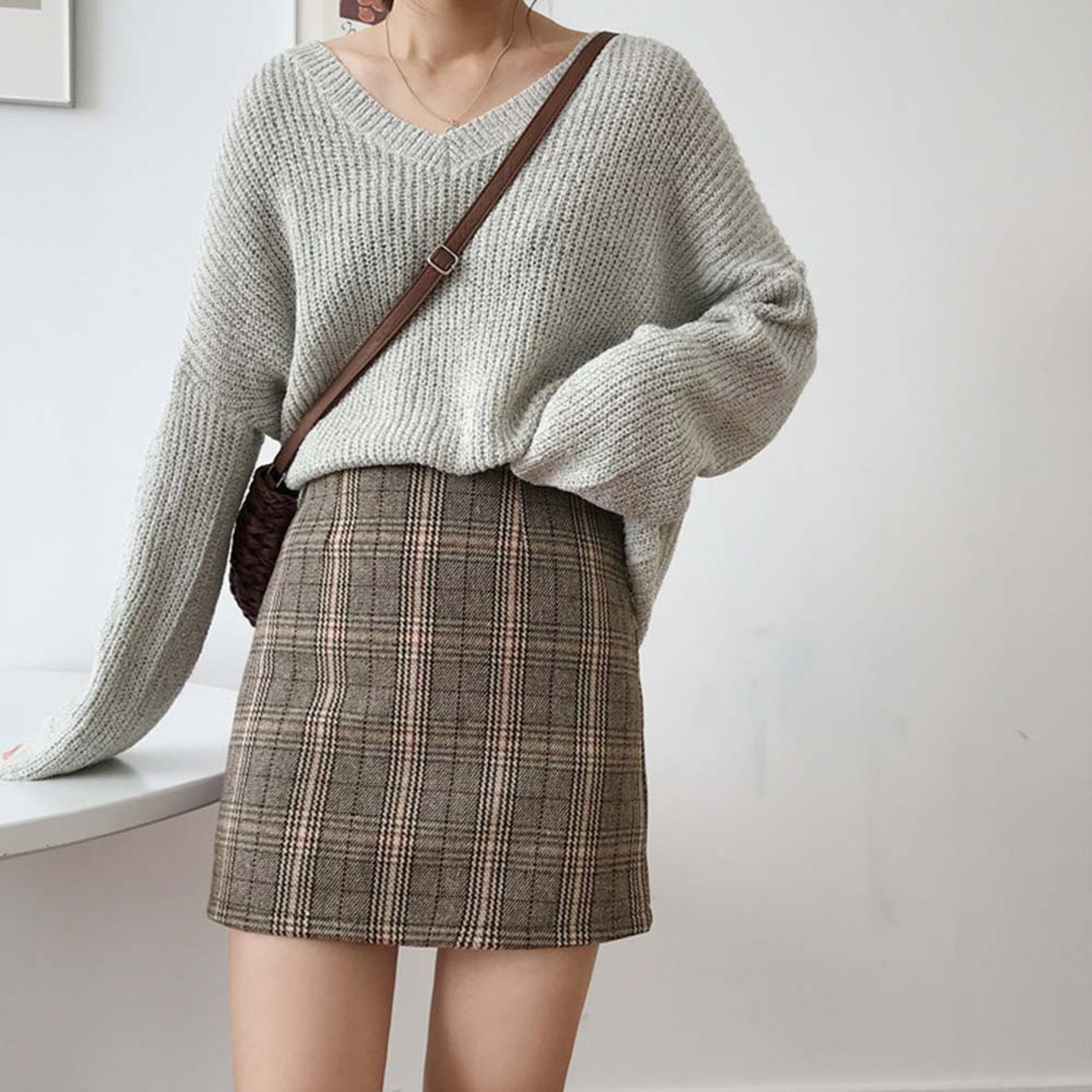 ウールタッチ生地で肌寒い冬でも可愛くあったか、秋冬定番のグレンチェック柄のミニ丈タイトスカート