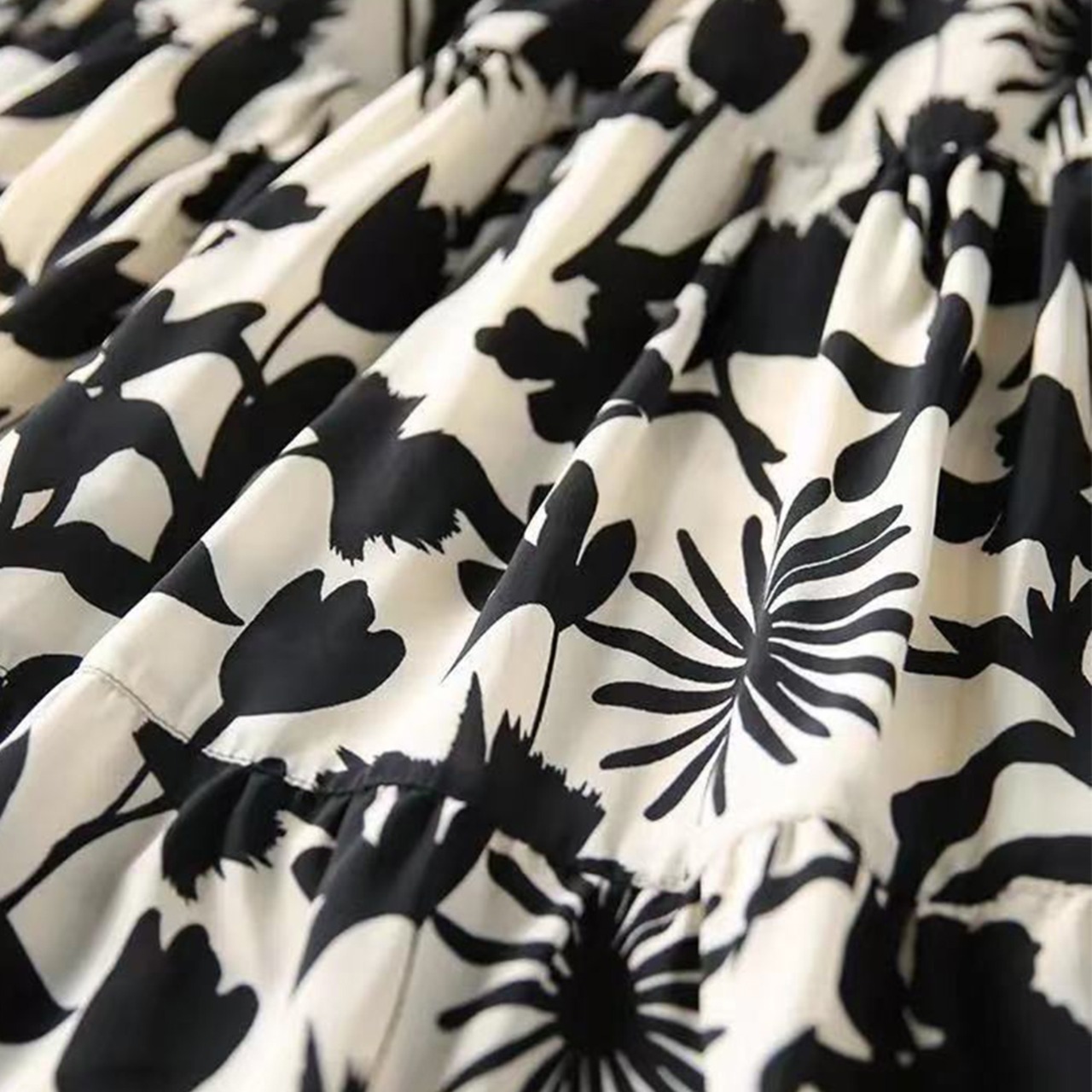 サラリとした軽やかさと、ふんわり広がるAラインの切替ティアードスカートです