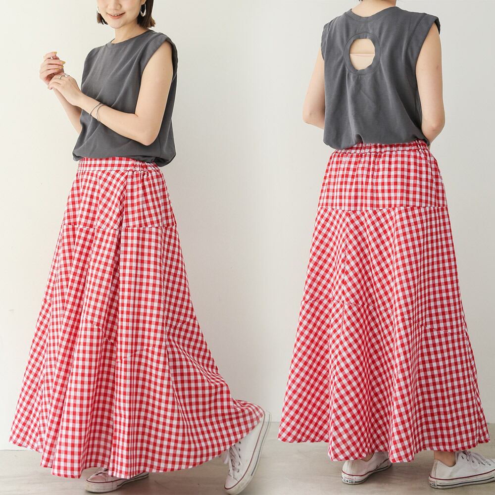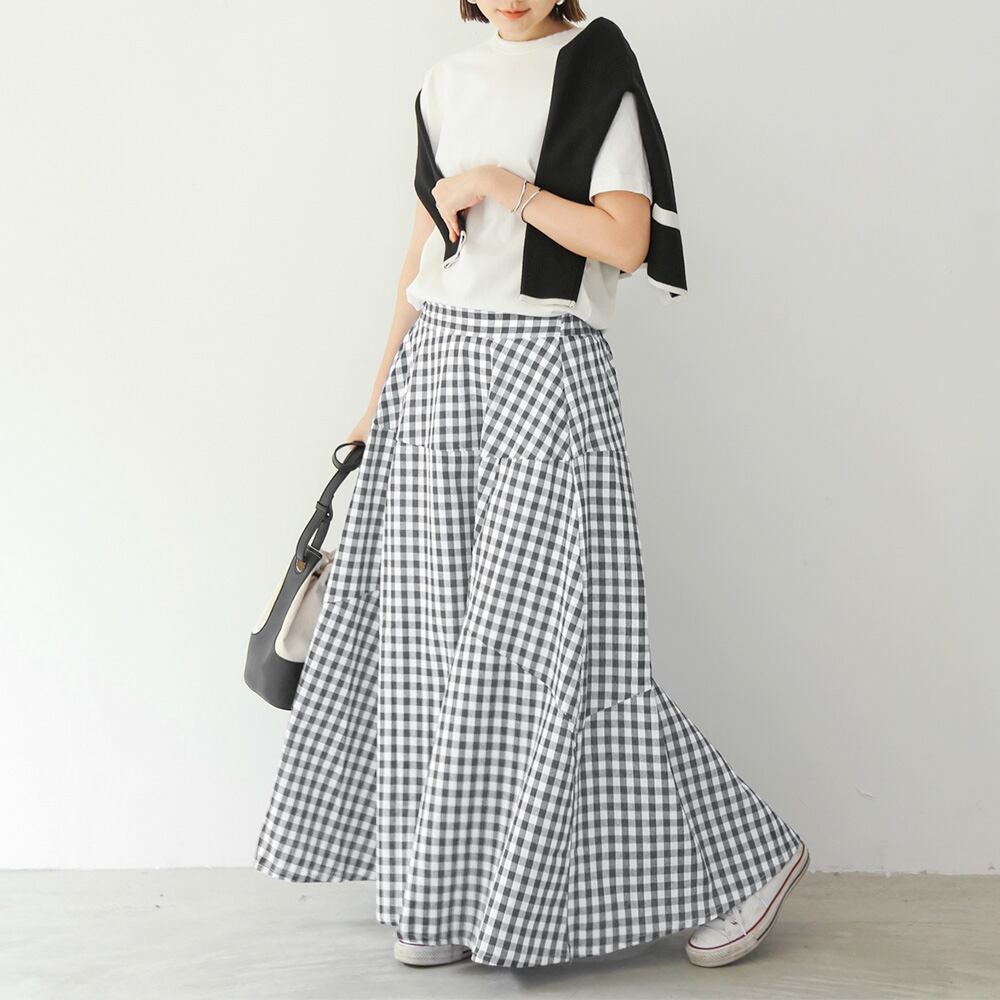 爽やかなギンガムチェックが目を惹くマキシ丈スカート