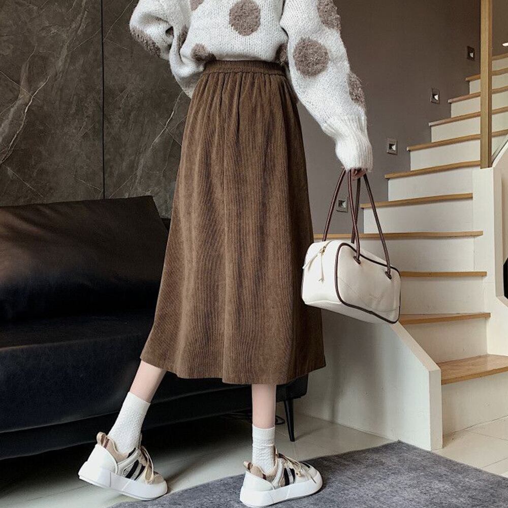 コーデュロイ生地がコーデに季節感漂うニュアンスをプラスしてくれるスカート