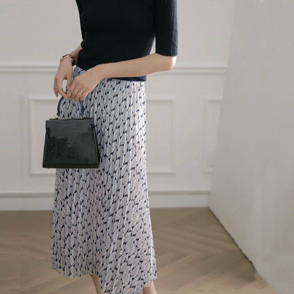 プリーツスカート ウエストゴム Aラインスカート ミモレスカート 着やせ おしゃれ きれいめ