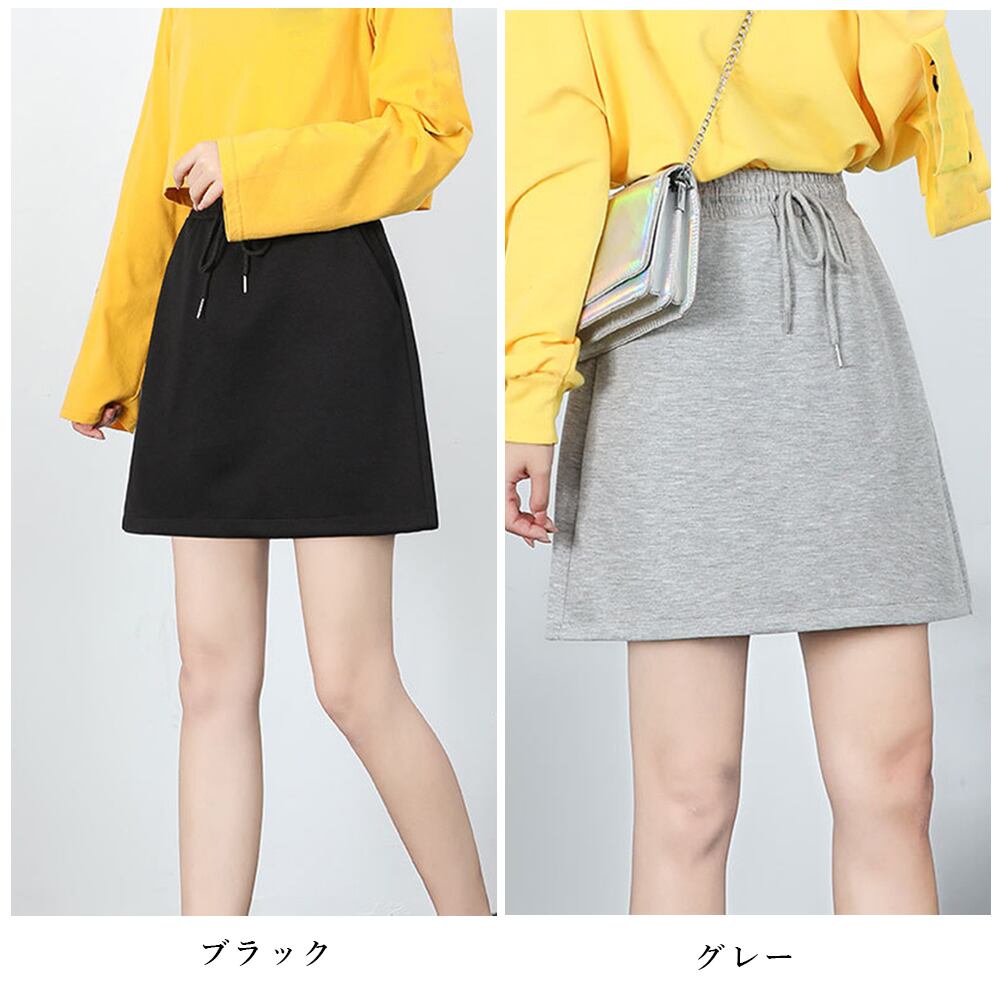 レディース ウエストゴム ミニスカート カジュアル Aラインスカート ハイウエストイージースカート ポケット付きボトムス