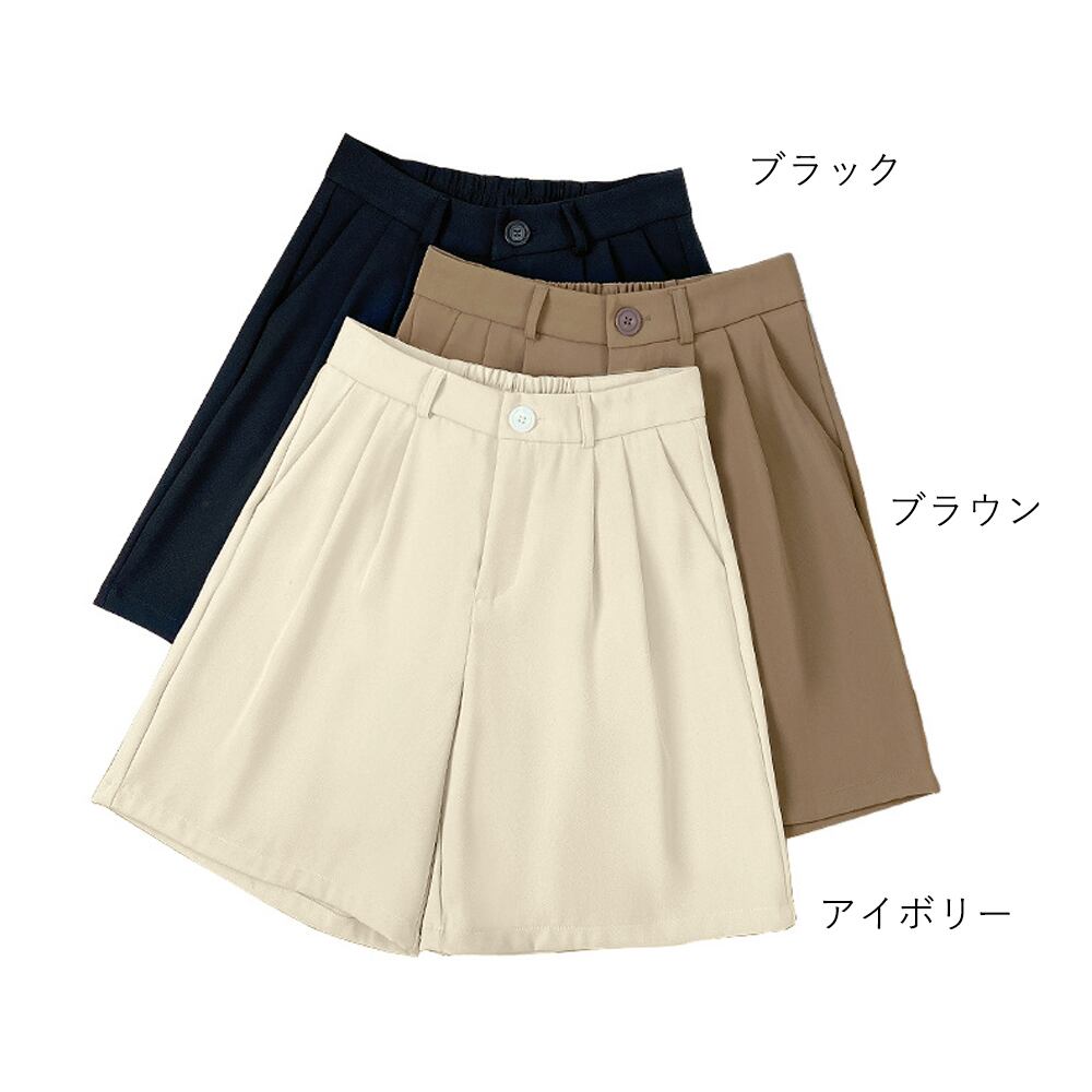 ショートパンツ ミディアム ストレート スラックス ワイドパンツ ハイウェスト 短パン 通勤 オフィス 大人