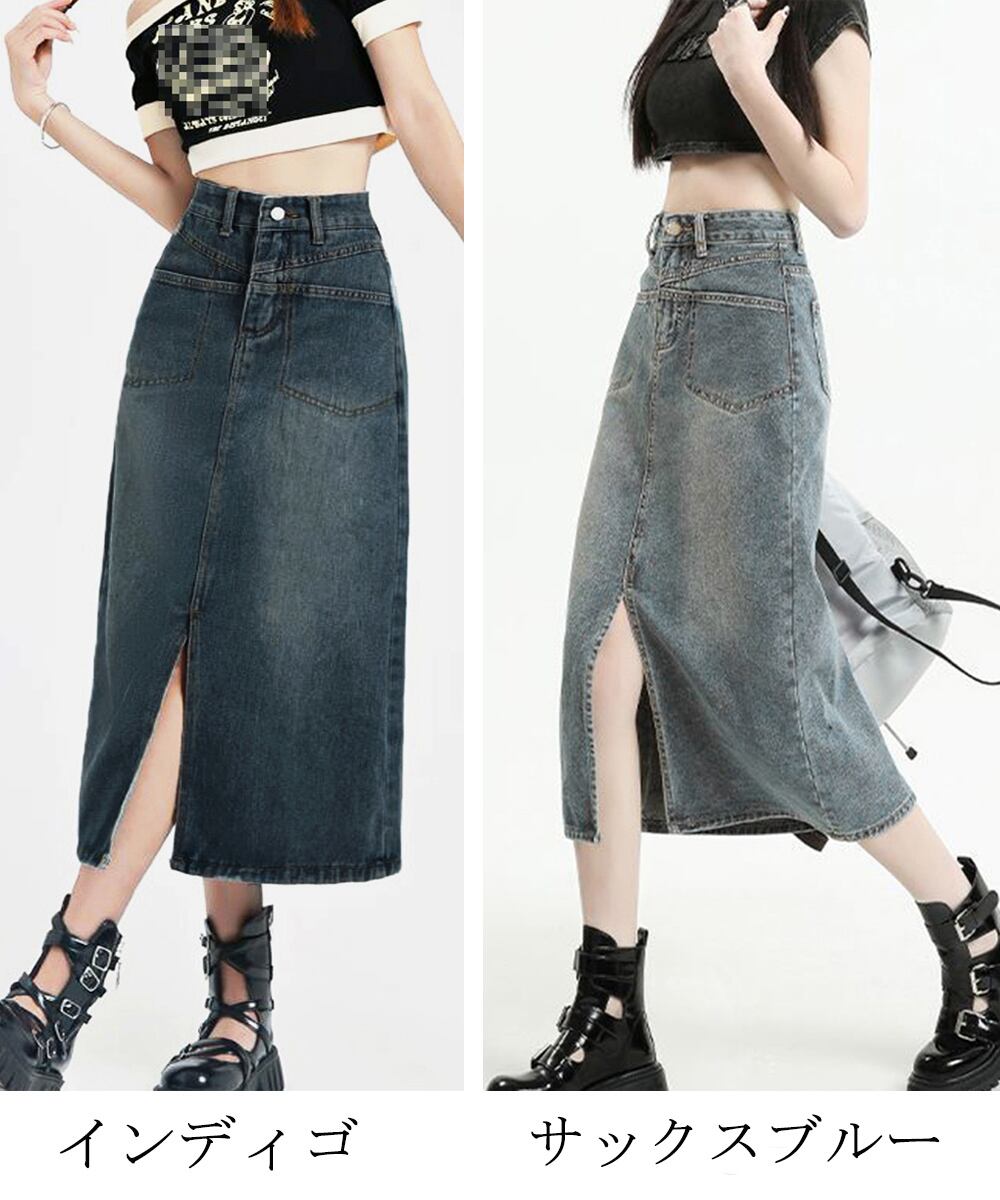 Aラインスカート ハイウエスト 体型カバー ミモレ丈スカート カジュアル ジーンズ 春秋夏冬 ボトムス セミタイト