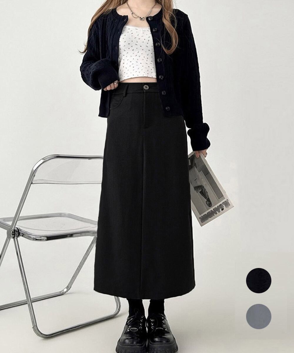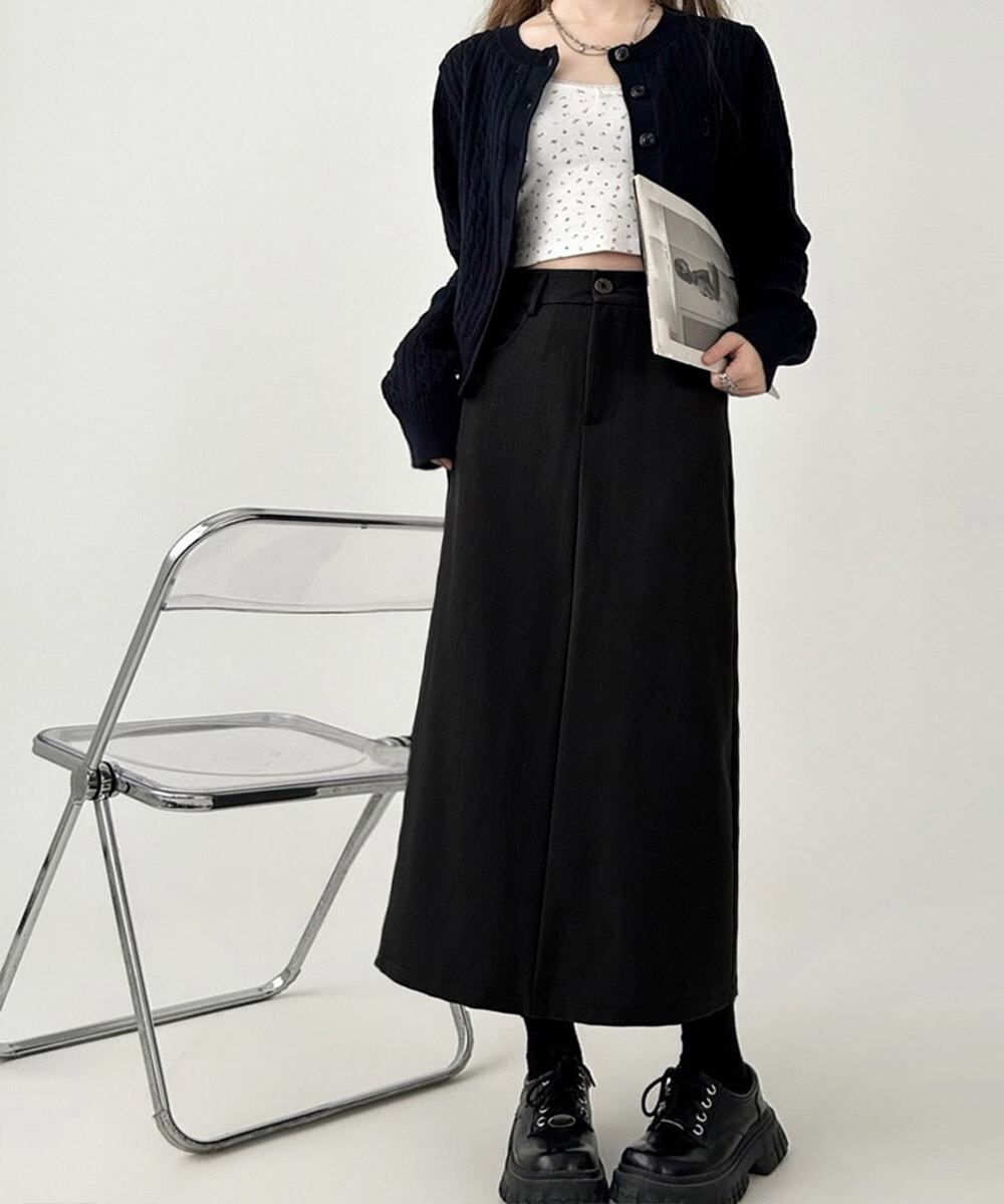 オールシーズン使える、バックスリット入りのロングスカートです。