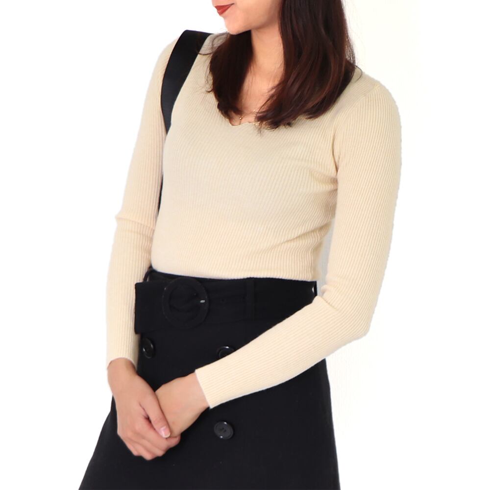 vネック ニット トップス レディース ニットカットソー 長袖 シンプル
