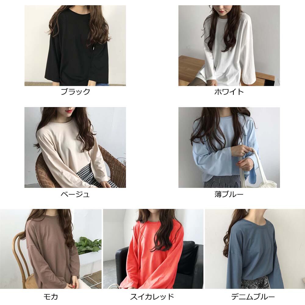 tシャツ レディース 長袖 ゆったり トップス 春夏 クルーネック カットソー