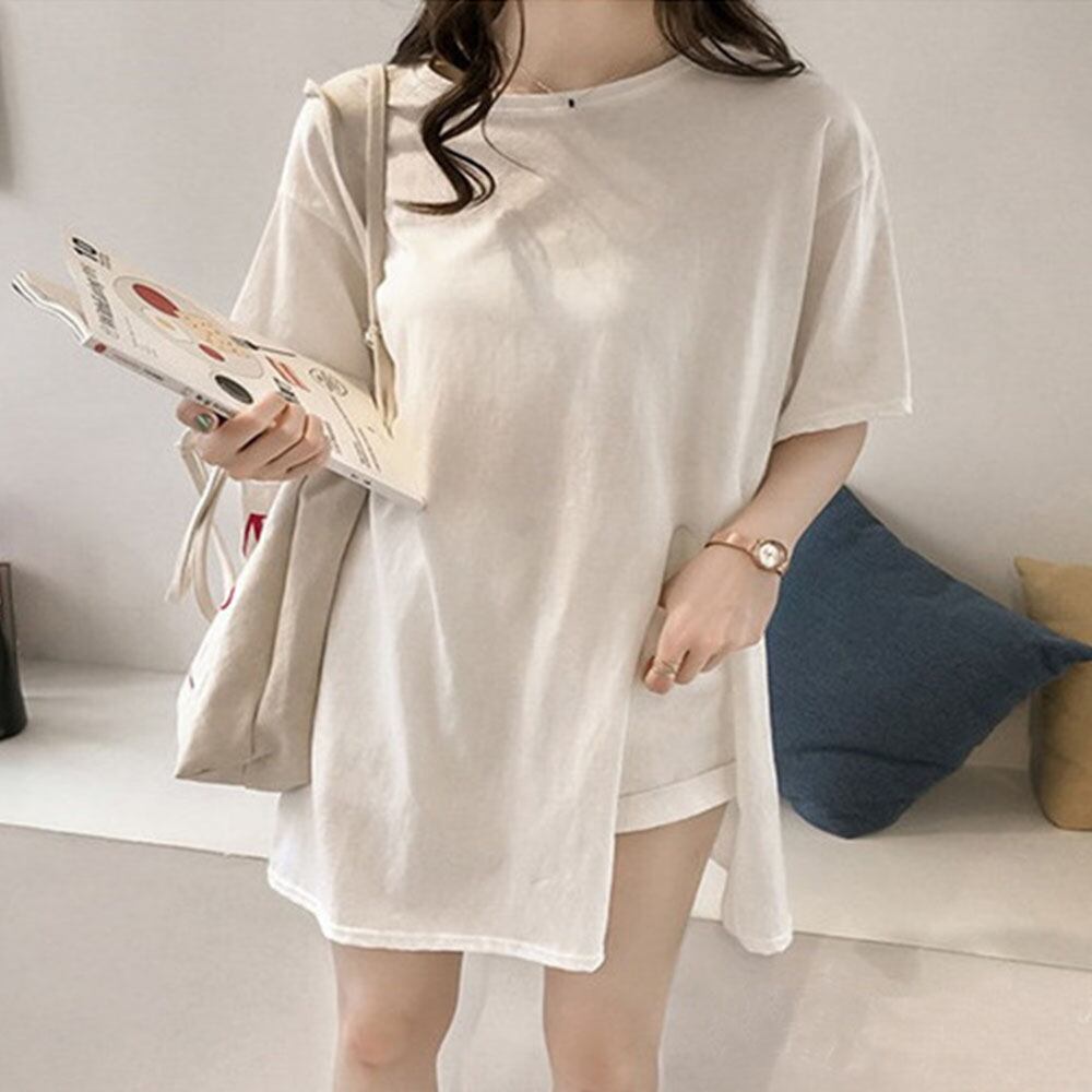 ロンT 半袖 カジュアル トップス おしゃれ カットソー 5分袖 チュニック 無地 オルチャン ロングTシャツ ゆったり