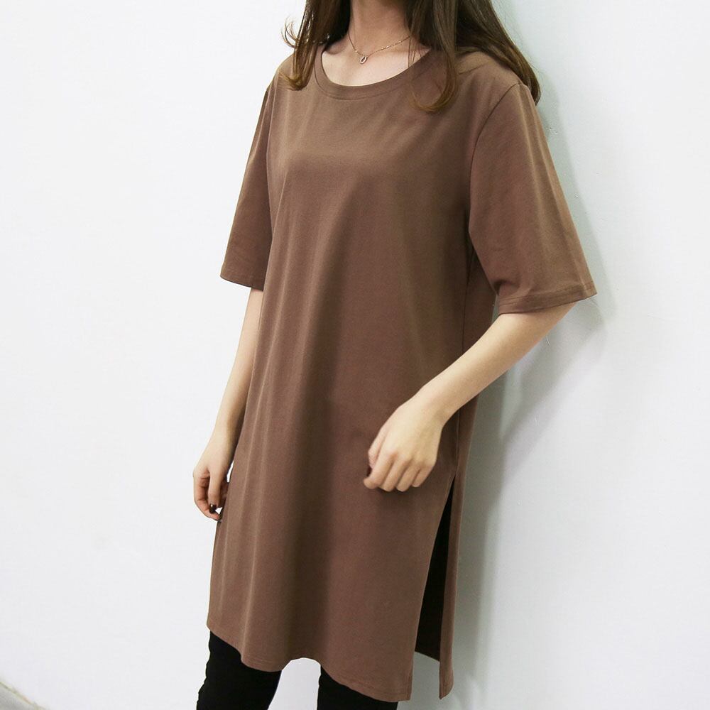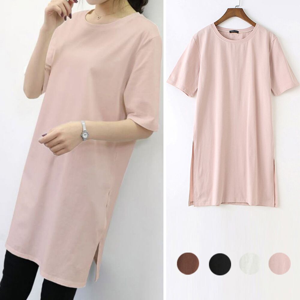 ロングtシャツ レディース 半袖 tシャツワンピ スリット チュニックワンピ