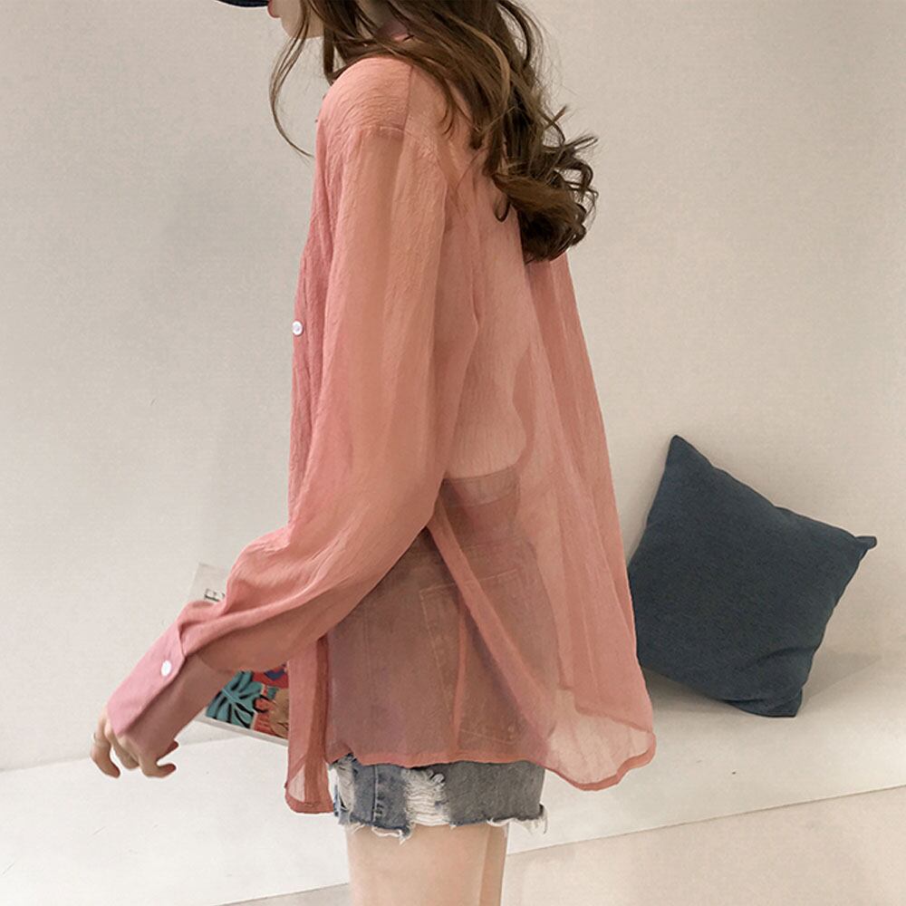 透け感があざとかわいい大人なシースルー生地の長袖ブラウス