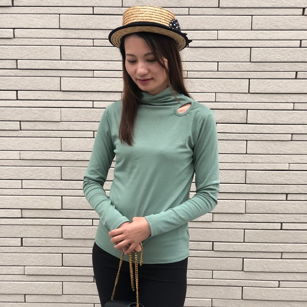 トップス レデイース ハイネック カットソー 長袖 ロング丈 トップス 秋冬