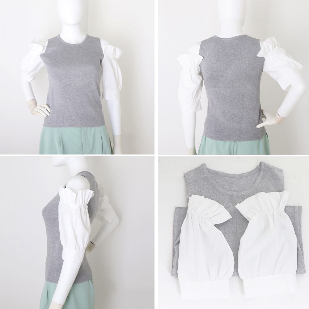 肩のギャザーでボリュームアップさせた袖で二の腕の華奢見せも叶う