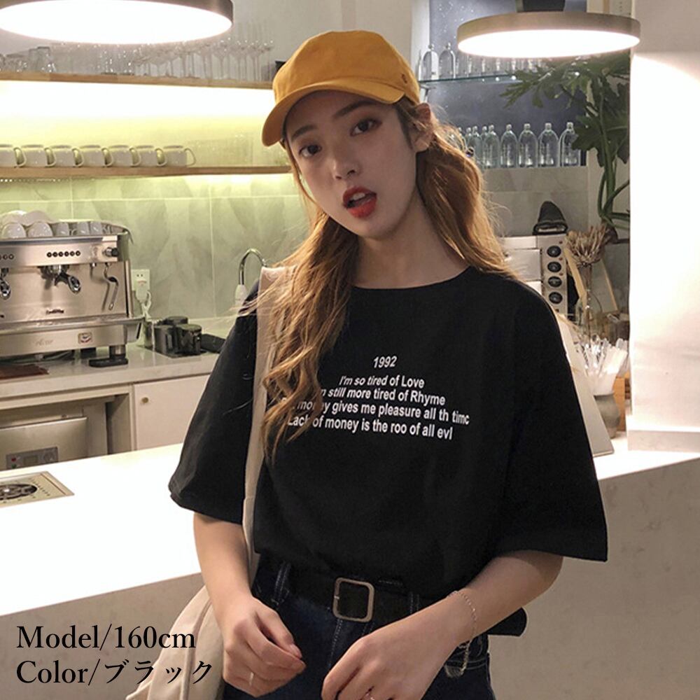 カジュアル プリント tシャツ レディース 半袖 ロゴtシャツ シンプル