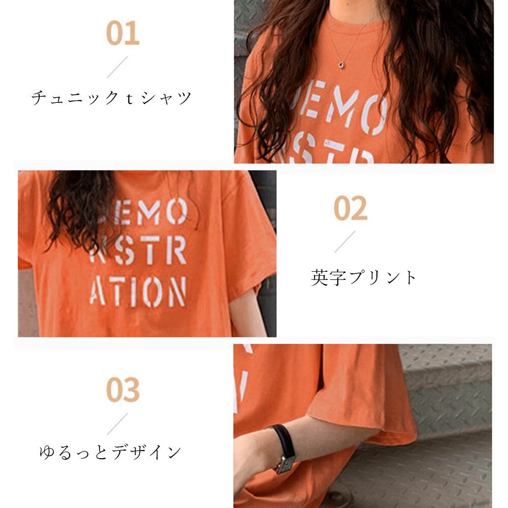 ロング ロゴtシャツ レディース 半袖 カットソー 体型カバー 英字プリントtシャツワンピース ゆったり トップス