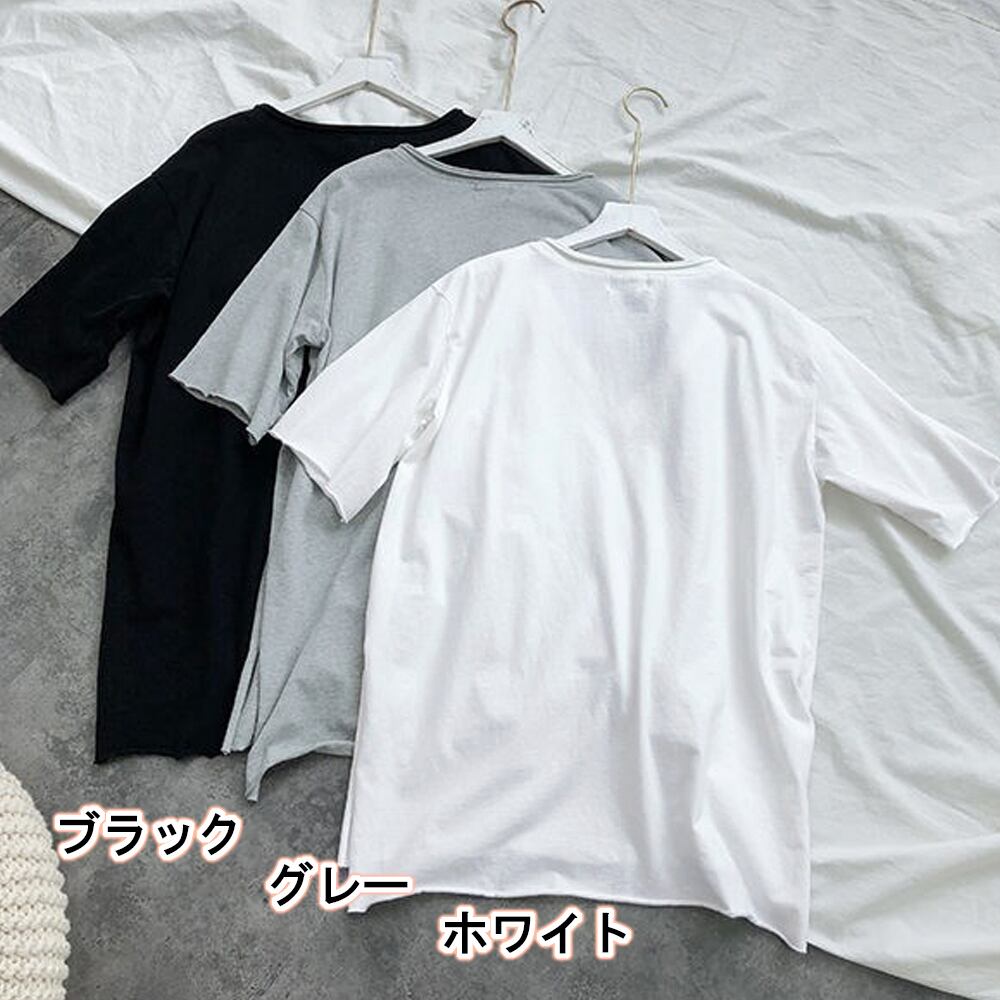 サイドスリット カットソー レディース 切りっぱなし 半袖 tシャツ Vネック