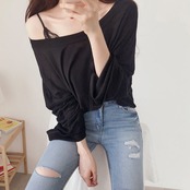 オフショルダー トップス 袖スリット ゆったり 体型カバー 長袖 お洒落