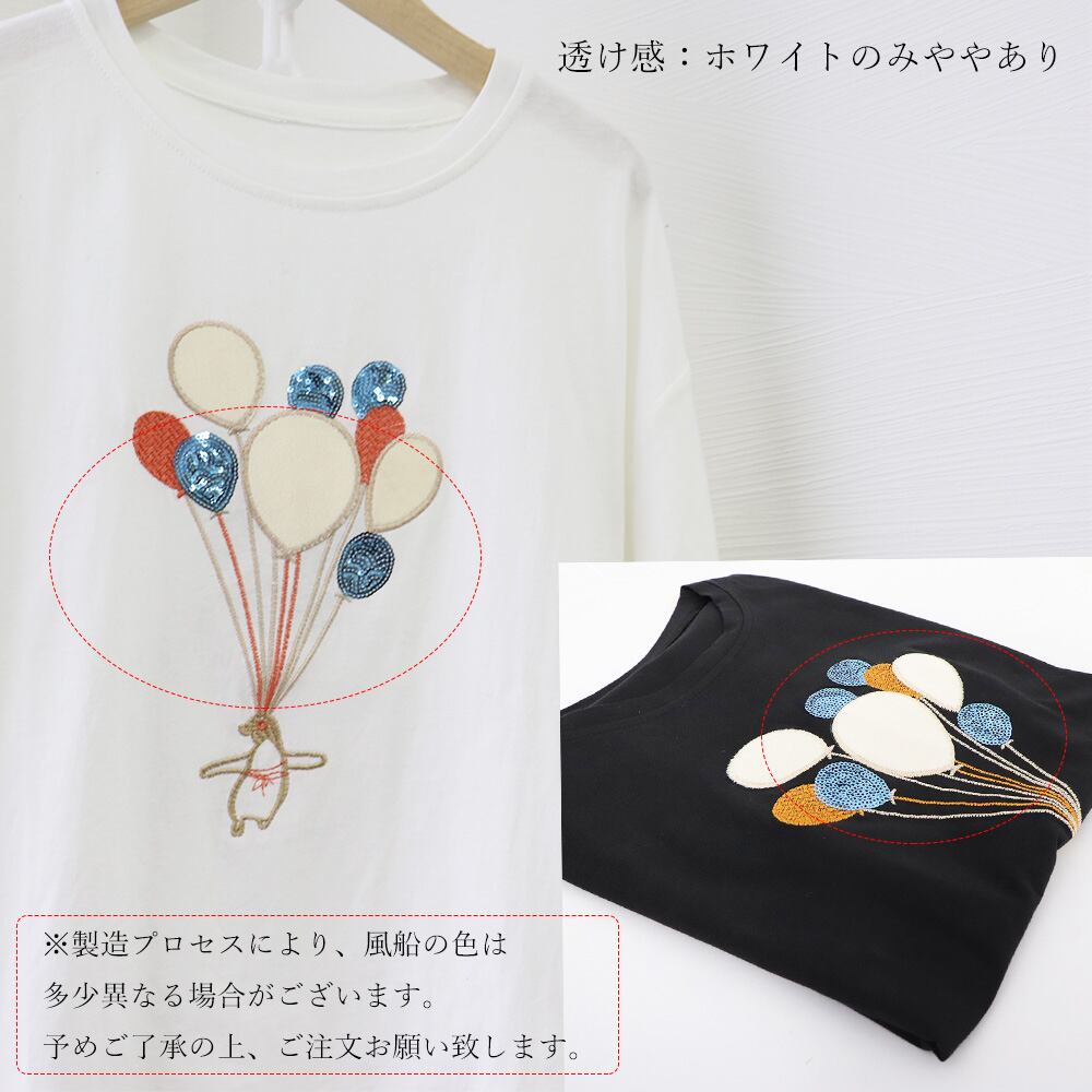 フロントに風船刺しゅう入りデザインが可愛いシンプルなTシャツ
