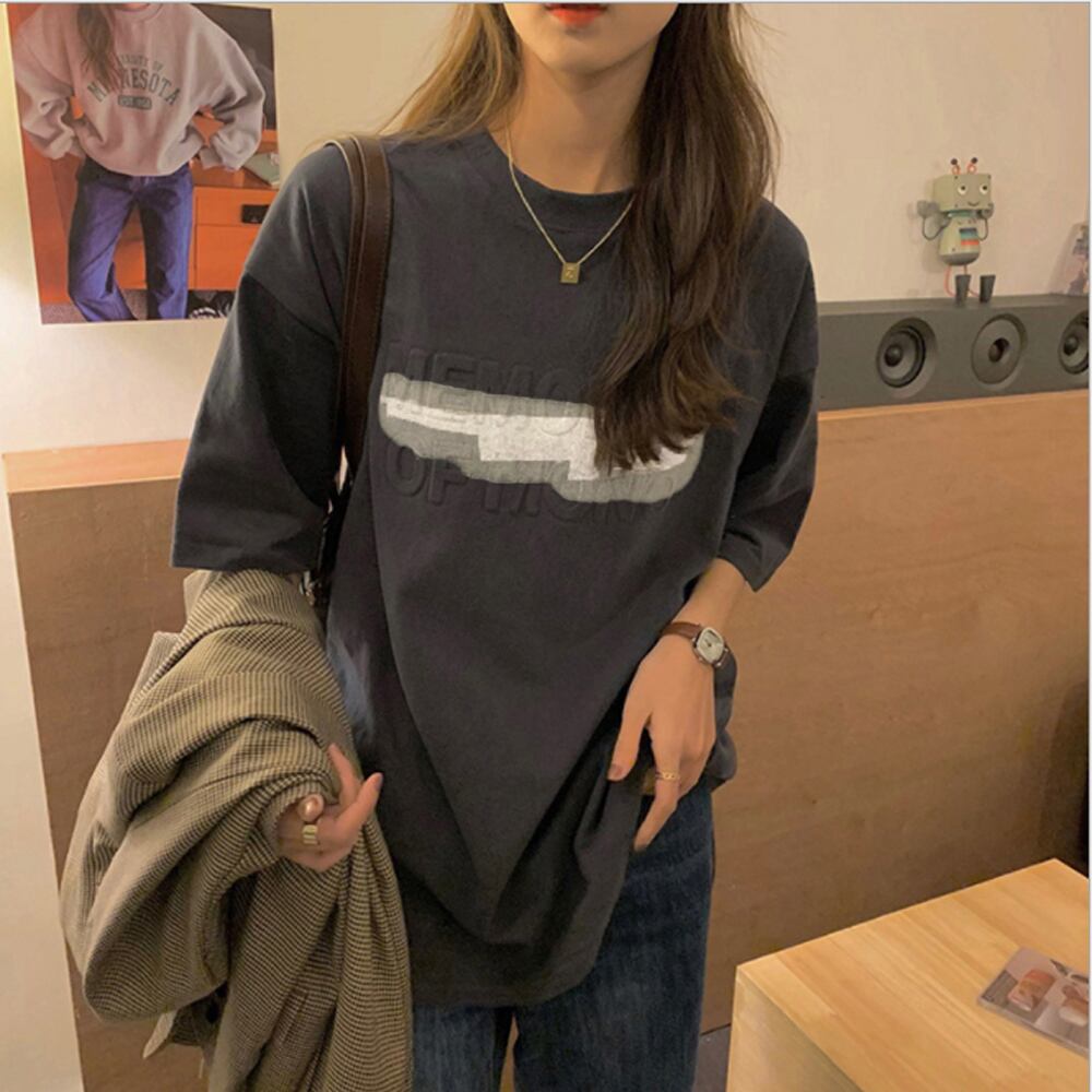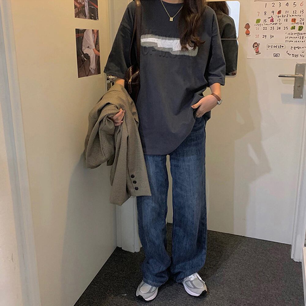 ロング丈 ラウンドネック Tシャツ 体型カバー おしゃれ プルオーバー きれいめ 韓国 ファッション カットソーゆったり トップス夏 着やせ